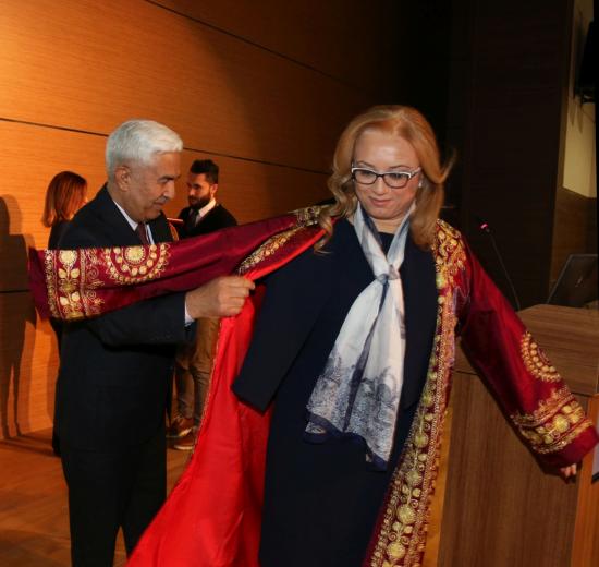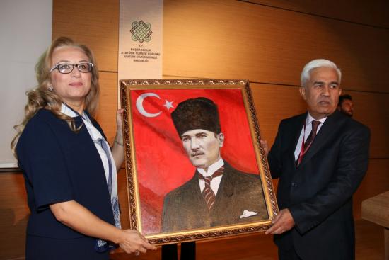 Yapılan konuşmaların sonunda Bilgi Şölenine katılan Özbekistan Eski Kültür Bakanı Prof. Dr. Tursunali Kuziyev, günün anısına Rektörümüze Özbekistan geleneksel kadın giysisi olan ‘Çapan’ ile yağlı boya çalışması olan Atatürk büstünü hediye etti. Rektörümüz de kendisine plaket takdiminde bulundu.