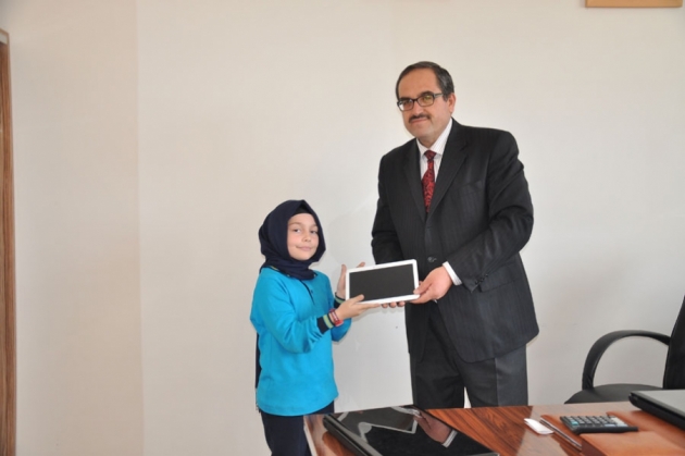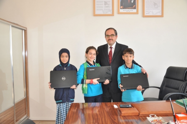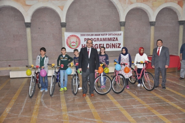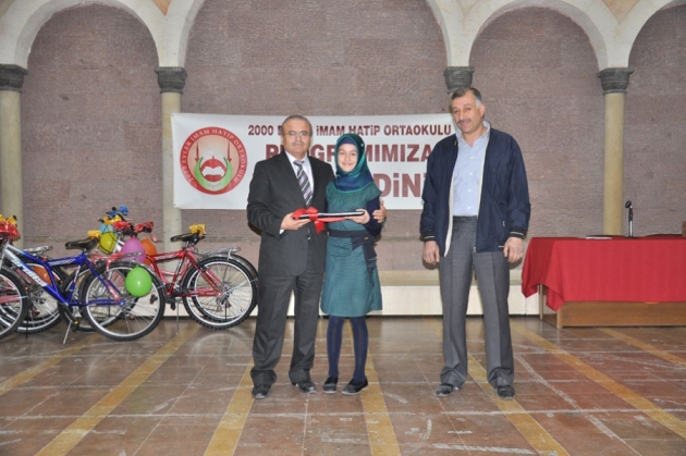 Hayırseverlerin, Okul Aile Birliğinin de katkıları ile temin edilen 3 adet diz üstü bilgisayar, 3 adat üstün donanımlı tablet, 6 adet bisiklet ve 48 adet tablet sahipleri olan başarılı öğrencilere verildi.