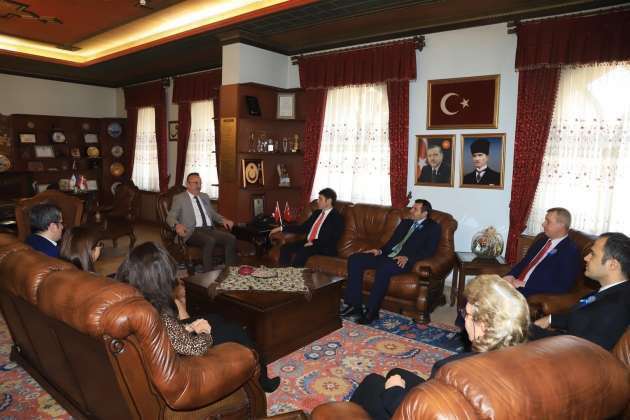Nevşehir İl Defterdarı Orhan Taş beraberindeki bir heyet ile birlikte 30. Vergi Haftası kutlamaları kapsamında Nevşehir Belediye Başkanı Atilla Seçen’i makamında ziyaret etti.