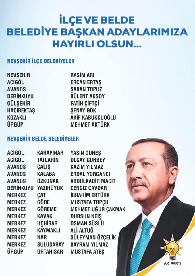 31 Mart 2019 Pazar günü gerçekleştirilecek yerel seçimler nedeniyle AK Parti Nevşehir il Başkanlığı Kapadokya Kültür Merkezinde düzenlediği coşkulu bir aday tanıtım toplantısıyla ilçe ve Beldelerin Belediye Başkan adaylarını açıklandı.