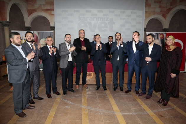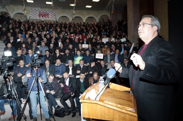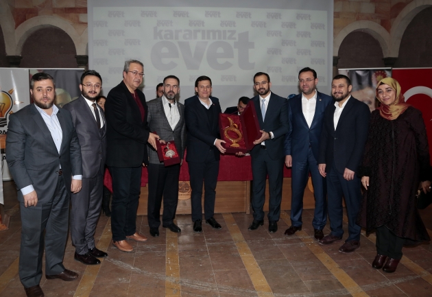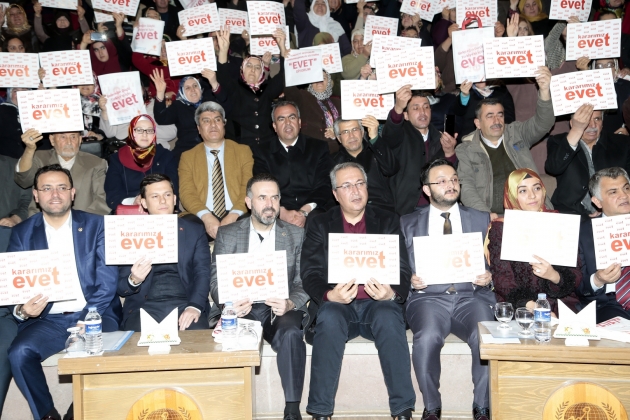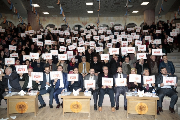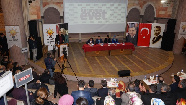 AK Parti Sivil Toplum ve Halkla İlişkiler Başkanı ve AK Parti Genel Başkan Yardımcısı Fatih Şahin’de AK Parti Nevşehir İl Teşkilatı Genişletilmiş İl Danışma Meclisi toplantısında yaptığı konuşmada, AK Parti’nin haksız güçlülere karşı haklı güçsüzlerin tarafında mücadele etme anlayışı ile hareket ettiğini kaydetti. Güçlü bir teşkilatlanma sistemi oluşturan AK Parti’nin 2003 yılından beri bugüne kadar yapılan 5 genel seçim, 3 yerel seçim, 2 halk oylaması ve bir cumhurbaşkanlığı seçiminden alınlarının akıyla çıktıklarını söyledi. 16 Nisan’da Türk Milletinin önüne, anayasa değişikliğiyle ilgili bir halk oylamasının geleceğini hatırlatan Şahin, "Türk milleti olarak oldukça önemli referandumun arifesindeyiz. Ülkemiz ve bölge için, dünyadaki tüm mazlum ve mağdur milletler için 63 gün sonra çok önemli bir halk oylaması gerçekleştirilecek. Bu halk oylamasından da alnımızın akıyla çıkacağımızdan hiçbir tereddüt ve şüphem yoktur. Hedefimiz, evet oylarının mümkün olduğunca yüksek çıkması, halkımızın tercihinin mümkün olduğunca yüksek oranda olmasıdır." şeklinde konuştu. Halk oylamasının masum ve mazlum milletler için de çok önemli olduğunu bildiren Şahin, "Bu halk oylamasından da daha önceki bütün seçimlerden tüm tezlerimizi kabul ettirerek çıktıysak yine zaferle çıkacağımızdan kaygım yok. Türkiye'ye örnek teşkil edilecek birlik beraberlik ve kardeşliğin önemli olacağına inanıyorum. Kampanya çalışmalarımızı hayata geçirmeliyiz. Dünyada 200'e yakın ülke var. Her ülke kendi hedeflerine göre sistemler oluşturuyor. Halkımızın önüne getirdiğimiz değişimin devlet sistemleri ile alakası bulunmamaktadır. Bizim devlet sistemimiz Cumhuriyettir ve üniter bir cumhuriyettir. Bununla ilgili kafa karışıklığı ve tereddüt kesinlikle söz konusu değildir. Bu konuda ki son nokta zaten 1923'te konulmuştur. Halkımızın oyuna sunulan Cumhurbaşkanlığı Hükümet Sistemi ise millet iradesinin devlet yöntemine yansımasıdır. On yıllar boyu darbelerle, muhtıralarla, krizlerle, ve kaoslarla ülkemizin yolundan çevrilmeye çalışıldığını görüyoruz. Millet iradesinin rafa kaldırıldığına şahit oluyoruz. Bu sistemle ülkeye layığı ile hizmet edilmediğini hepimiz biliyoruz. Hızlı yol almayız ama aracımız hedefimize bizleri götürecek durumda değil çarpık hükümet sistemi modelinin bu ülkenin ihtiyaçlarını karşılaması söz konusu değil. Ülkemizde siyasi istikrarın kalıcı hale gelmesi ve millet iradesinin belirlenmesi için güçlü ve yetkin olunması gerekir ”dedi. AK Parti Genel Başkan Yardımcısı Şahin, mecliste anayasa değişikliği görüşmelerini engellemeye çalışan CHP'nin şimdi de Anayasa Mahkemesine gitmeye hazırlandığına değinerek, şöyle devam etti: "CHP, sürekli olarak hakeme itiraz eden futbolcular gibi. Sürekli hakemle oynuyorlar. Yahu, kendi oyununuzu oynayın. Kendi işinizi yapın. Sürekli huzursuzluk çıkarıyorlar. CHP'nin