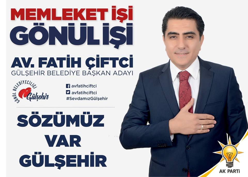 31 Mart yerel seçimleri nedeniyle son 2 aydır çalışmalarına aralıksız devam eden bu kapsamda çeşitli programlar ve ziyaretler düzenleyerek seçim propagandalarını yapan Ak Parti Gülşehir İlçe Başkanı Erkan Çiftçi, Ak Parti Gülşehir Belediye Başkan Adayı Fatih Çiftçi ve İl genel meclis üyesi adaylarına destek amaçlı geniş katılımlı bir konvoy düzenleyeceklerini belirtti.