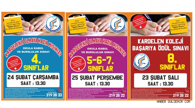 Kamuoyu tarafından yakından takip edilen ve 23, 24, 25 Şubat tarihlerinde 4, 5, 6, 7 ve 8. sınıf kademelerinde gerçekleştirilecek sınavlara çok sayıda başvuru alındı. Konu ile ilgili açıklamalarda bulunan Özel Kardelen Fen ve Anadolu Lisesi Müdürü Mürsel Mert, "Her yıl yoğun katılımla gerçekleştirdiğimiz bursluluk sınavlarımız için bu yıl da yoğun bir başvuru sürecinin sonuna yaklaşmış bulunmaktayız. Sınırlı sayıdaki kontenjanımız ve %100'e varan eğitim bursundan faydalanmak isteyen öğrencilerimizin www.kardelenkoleji.k12.tr adresinden online başvuru yapmaları gerekmektedir. Yüz yüze ve salgın önlemleri dahilinde uygulayacağımız bursluluk sınavımıza girecek tüm öğrencilerimize başarılar dilerim." dedi.