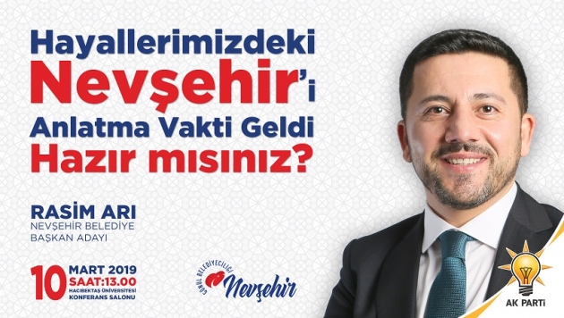 AK Parti Nevşehir Belediye Başkan Adayı Rasim Arı, "Nevşehir'imiz için hep birlikte çalışacağız, birlikte başaracağız" diye konuştu.
