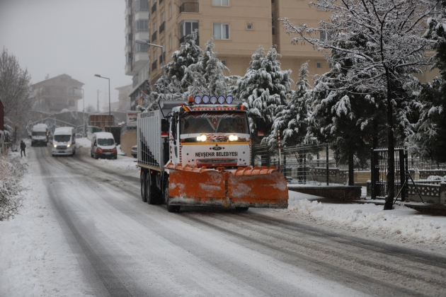 Nevşehir Belediyesi Karla Mücadele Ekipleri, kar yağışı dolayısıyla ulaşımda aksama yaşanmaması için çok sayıda iş makinesi ve personel ile kent genelinde kar kürüme ve temizleme çalışması yaptı. Aralıklarla etkili olan kar yağışı sonrasında soğuk hava ile birlikte yollardaki buzlanma tehlikesine karşı sürekli olarak mahalle araları, ana arterler ve yaya kaldırımlarında tuzlama çalışma yapan belediye ekipleri, sürücüleri buzlanma tehlikesine karşı dikkatli olmaları konusunda uyardı.