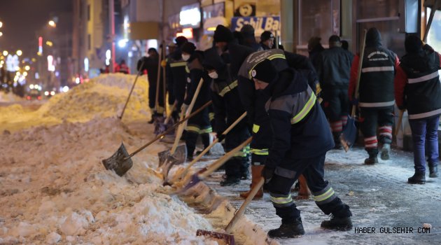 Çok sayıda iş makinesi ile gerçekleştirilen çalışmalarda yaya kaldırımlarını da temizleyen belediye ekipleri ayrıca buzlanma tehlikesi oluşan yollarda tuzlama çalışması gerçekleştirdi.