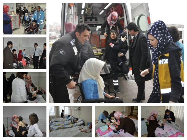 Çocuklardan Seddıgheh Khalılı(15), Zahra Khalılı(12), Mahdıreza Khalılı(10), Muhammad Hadi Khalılı(1.5), Çocuk Hastalıkları Uzmanı, Fizik Tedavi ve Rehabilitasyon Uzmanı, K.B.B. Hastalıkları Uzman Hekimleri tarafından muayene edildi. Çocuk Hastalardan 3 tanesi babası refakatinde Fizik Tedavi Servisine yatırıldı, Trakeomalazi (Soluk borusu gelişme geriliği) nedeni ile Trakeostomize (boyunda hava yolu açık) olan en küçük çocukta Süt Çocuğu Servisine yatırıldı.