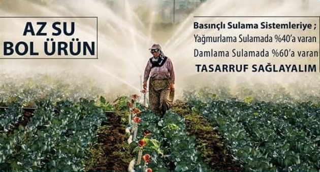 Ülkemizde ki suyun 40 milyar m3’ünü (%74) sulamada,- 7 milyar m3’ünü (%13) içme-kullanma suyu, - 7 milyar m3’ünü (%13) sanayi suyu ihtiyacını karşılamada kullanılmakta olduğunun altını çizen DSİ Genel Müdürü Murat ACU,’ Basınçlı borulu şebekelerin yapımının artırılması ve klasik yöntemlerle sulama yapılan eski sulamaların rehabilite edilmesi ile sulamada kullanılan %74’lük su oranının düşürülmesini hedeflemekteyiz.