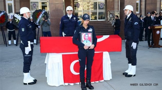 Tören şehidimizin naaşının katafalka koyulmasıyla başladı. Saygı duruşunun ardından şehidimizin özgeçmişi okundu. İl Emniyet Müdürlüğü adına Komiser Yardımcısı Volkan Veren tarafından bir konuşma yapıldı. Şehidimizin ruhuna dualar okunmasının ardından naaşı meslektaşları tarafından katafalktan alınarak ambulansa konuldu.