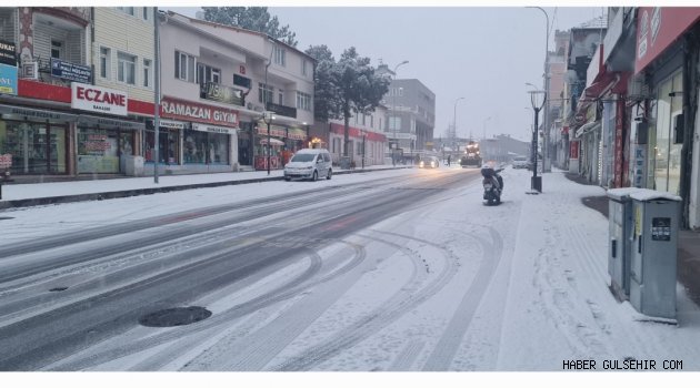Gülşehir'de gece saatlerinde başlayan kar yağışı devam ediyor.