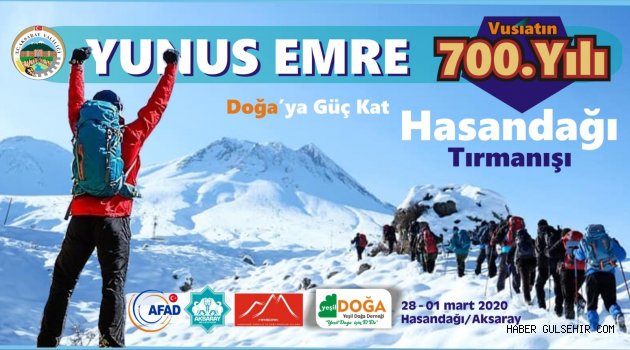 Türkiye Dağcılık Federasyonu Aksaray İl Temsilciliği tarafından büyük mutasavvıf Yunus Emre’nin doğumunun 700. yılına dikkat çekmek için büyük bir tırmanış yapılacak. Etkinlik 28 Şubat-1 Mart tarihlerinde Hasandağı'nda yapılacak.