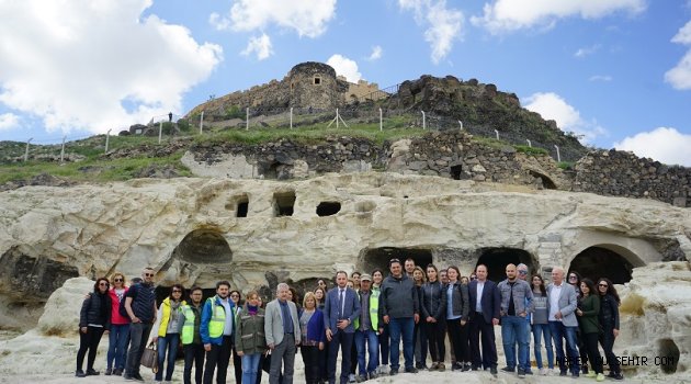 İller Bankası Heyeti Nevşehir Belediyesi ziyaretinin ardından Nevşehir Kalesi etrafındaki yeraltı şehrinde inceleme gezisinde bulundu.