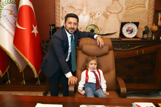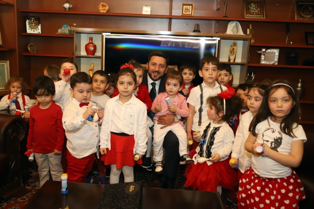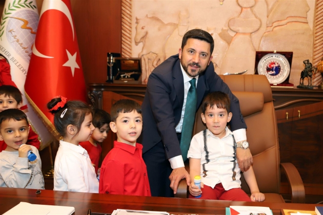 4-5 yaş grubundaki çocukların isteklerini kırmayarak onları makam koltuğuna oturtan ve tek tek fotoğraf çektiren Başkan Arı: “Çocuklarımız bizim her şeyimiz. Onların yaşamında güzelliklerin hakim olması için çalışacağız.” dedi.