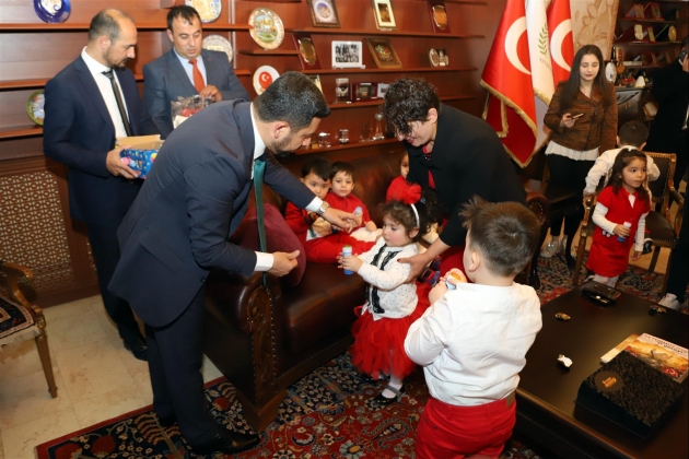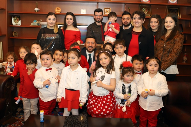 Belediye Başkanı Rasim Arı, Diomand Kids Özel Nevşehir Kreş Gündüz Bakımevi ve Çocuk Kulübü öğrencilerini makamında kabul etti. Kreş Müdürü Ezgi Boylu Demir, okul yöneticileri ve öğretmenlerinin de hazır bulunduğu ziyarette, minik konuklarıyla yakından ilgilenen Başkan Arı, çocuklarla bir süre sohbet etti. Çocukların 23 Nisan Ulusal Egemenlik ve Çocuk Bayramı’nı da tebrik eden Arı, çocuklara çeşitli hediyeler dağıttı.