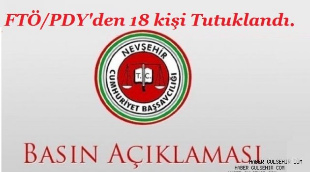 Fetullahçı Terör Örgütü/Paralel Devlet Yapılanması Silahlı Terör Örgütüne Üye Olma suçundan Aralarında Doktor ve Polislerinde bulunduğu 18 kişi Tutuklanırken; aynı soruşturma kapsamında gözaltına alınan 2 kişi adli kontrol şartıyla, 1 kişi ise Nevşehir Cumhuriyet Başsavcılığınca doğrudan serbest bırakıldı.