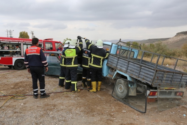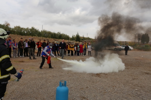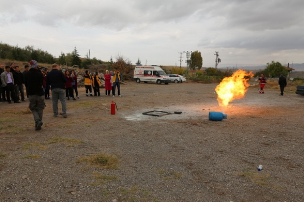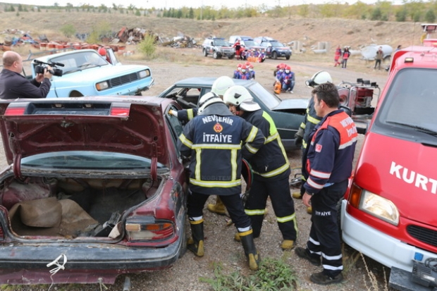 Teorik eğitimin ardından Nevşehir Belediyesi İtfaiye Müdürlüğü ile Ulusal Medikal Kurtarma Ekibi (UMKE)’nin ortaklaşa olarak yangın tatbikatı ile yanan bir araçtaki yaralıların kurtarılmasının yanı sıra meydana gelen bir trafik kazası sonrasında yaralılara yapılması gerekli müdahale tatbiki olarak aktarıldı.