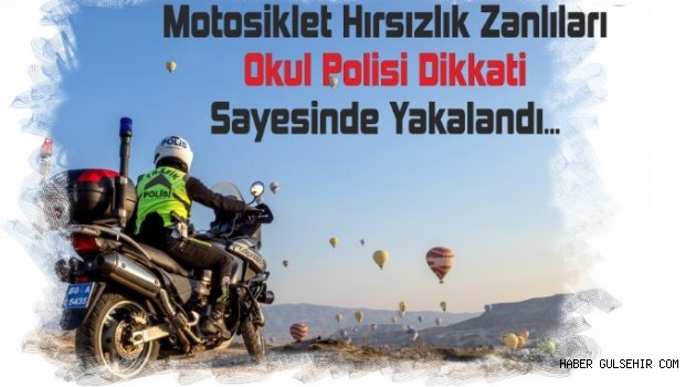15 Temmuz Mahallesinde park halindeki motosikletin çelik halatının kesilerek çalınması neticesinde meydana gelen “Bisiklet ve Motosiklet Hırsızlığı” olayı ile ilgili olarak;  Atatürk Ortaokulu Polisi tarafından okul etrafından ring halinde plakasız dolaşan motosikletin yapılan kontrolünde; şasi numarasının kazınmış olduğu çalıntı olduğu tespit edilmiş,  motosikleti kullanan F.K. ve M.D. isimli şahıslar; Nevşehir Cumhuriyet Başsavcılığının talimatları doğrultusunda Nevşehir İl Emniyet Müdürlüğü, Asayiş Şube Müdürlüğü ekiplerince gözaltına alındı.
