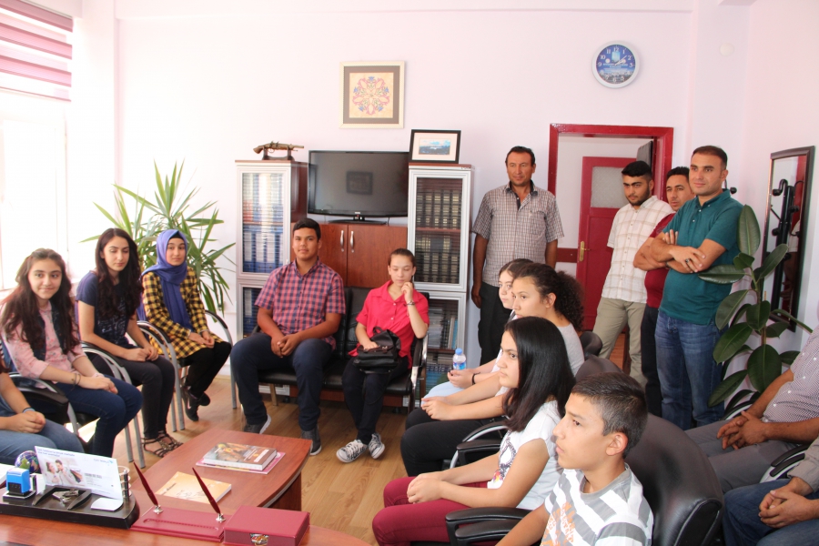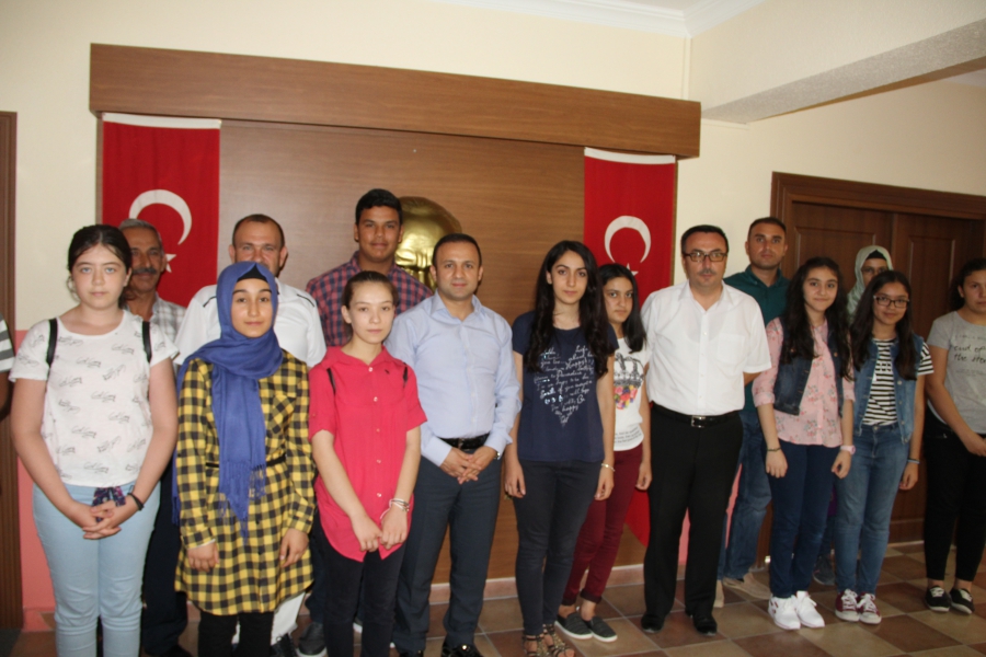 2015-2016 Eğitim Öğretim Yılında İlçemiz ortaokullarından mezun olarak Fen Liselerini Kazanan 14 öğrenci ve öğrenci velileri ile ortaokul müdürleri İlçe Kaymakamı Murat ERTEKİN ve İlçe Milli Eğitim Müdürü Yılmaz CEYLAN´ı makamlarında ziyaret ettiler.