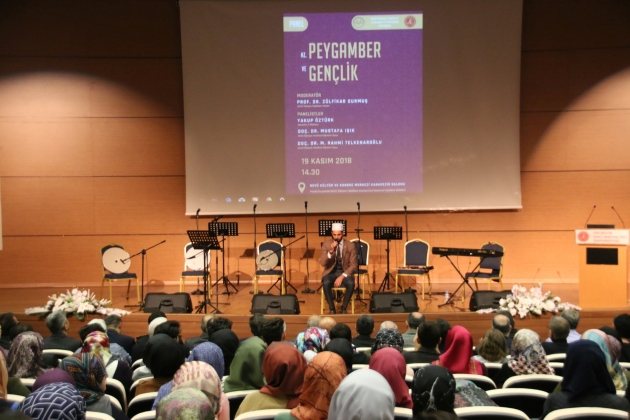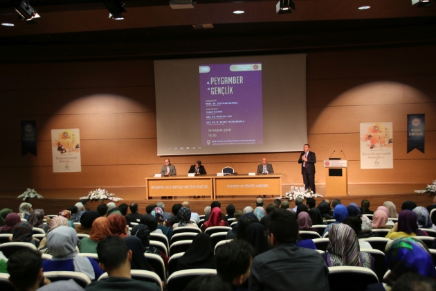 ‘Hz. Muhammed (s.a.v)  Gençlerle’ başlığı adı altında konuşan İlahiyat Fakültesi Hadis Anabilim Dalı Başkanı Doç. Dr. Mustafa Işık “Hz. Muhammed (s.a.v.) gençlerle derken, o bu davayı omuzlarken, göğüslerken gençleri yanına almıştır. Peygamberimiz olgunluk dönemine geldiğinde da büyük bir yük yüklendi ve yükü çok ağırdı. Hiç kimse kendisini bilmezken ve ticaretle uğraşırken, onu sıradanlıktan ayıran şey emin ve güvenilir biri olmasıydı. Çok zeki ve akıllıca çözümler üretir, hiç kimseyi kırmaz ve herkesi memnun ederdi. Hiç kimse ondan zarar görmez, o kimseye zarar vermezdi“ dedi.