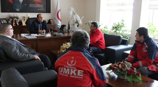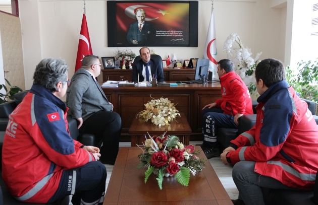 UMKE Ekibi görev dönüşü İl Sağlık Müdürü Dr.Rahim ÜNLÜBAY’ı makamında ziyaret ederek, Hatay Yayladağ’da yaptıkları faaliyetler hakkında ayrıntılı bilgiler verdiler. Nevşehir UMKE olarak bölgedeki çalışma koşullarının tüm zorluklarına rağmen üzerlerine düşen görevi en iyi şekilde yaptıklarını ifade eden Afetlerde Sağlık Hizmetleri İl Birim Sorumlusu Aygen TAŞPINAR, Nevşehir’i Hatay’ın Yayladağ İlçesinde en güzel şekilde hizmet vererek temsil ettiklerini söyledi.