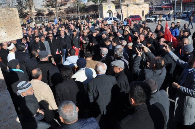 Ak Parti Gülşehir ilçe Başkanı Av. Fatih Çiftçi'nin konuşmasının ardından Kurşunlu Cami imamı Hüseyin Düzgün dua okudu. Zaman zaman tekbirlerin getiridiği açıklamada İsrail ve Amerika aleyhine sloganlar atıldı.
