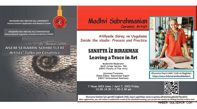 NEVÜ Avanos Seramik Uygulama ve Araştırma Merkezi (ASEM) tarafından ulusal ve uluslararası sanatçıların katılımlarıyla düzenlenecek seramik sohbetlerinin  ilk söyleşi konuğu Hindistan ve Singapur’da yaşayan Seramik Sanatçısı Madhvi Subrahmanian olacak.  Moderatörlüğünü ASEM Müdürü Doç. Dr. Betül Aytepe Serinsu ve çevirmenliğini NEVÜ Uluslararası İlişkiler Ofisi personeli Eğitim Uzmanı Özlem Kalkan’ın yapacağı söyleşi 7 Nisan 2023 Cuma günü 13.00-14.30 saatleri arasında çevrim içi olarak NUZEM Perculus üzerinden herkese açık biçimde gerçekleştirilecek.