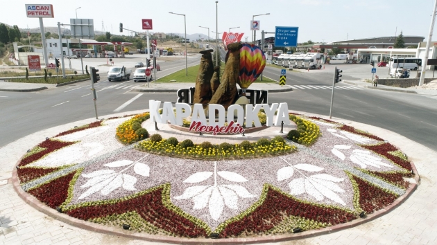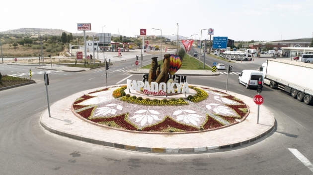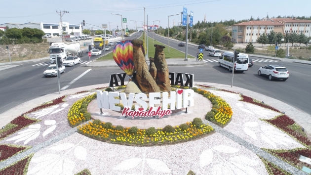 Nevşehir’in ana giriş kapısı olarak nitelendirilen terminal kavşağının yeni görüntüsü büyük beğeni topladı. Nevşehir Belediyesi tarafından yapılan düzenleme çalışmaları ile birlikte kavşak içerisine yerleştirilen ’Kapadokya Nevşehir’ yazısı ve balon figürü çiçeklerle birlikte kavşağa estetik bir görünüm kazandırdı.
