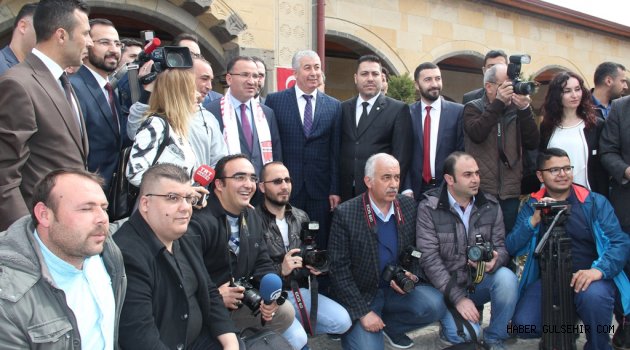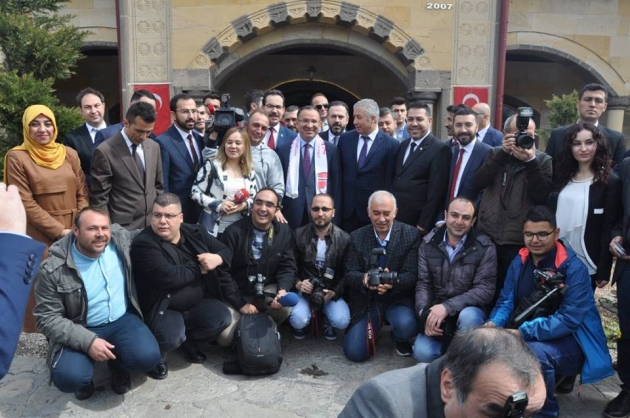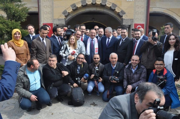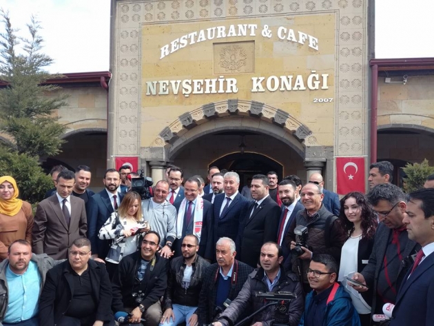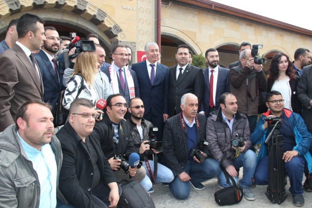 Bozdağ, Nevşehir Konağı’ndaki Medya Buluşması’nın çıkışında ise kendisini takip gazeteciler ile birlikte hatıra fotoğrafı çektirdi. Fotoğraf çekimi sırasında bir gazetecinin makinesini alan Belediye Başkanı Hasan Ünver, gazeteciler ile Bakan Bozdağ’ı birlikte fotoğrafladı.