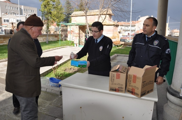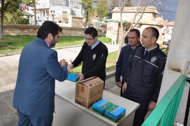 Okunan mevlit-i şerif ardından şehitlerin ruhuna ithafen dualar edilirken, emniyet mensupları ise, cami cemaatine gül suyu ve çikolata ikram etti.