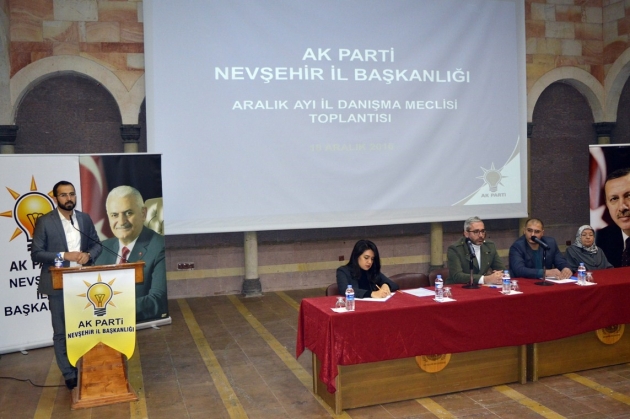 AK Parti Nevşehir İl Başkanı Mehmet Ali Tanrıver başkanlığında ki Aralık ayı İl Danışma Meclisi Toplantısına, AK Parti Nevşehir Milletvekilleri Mustafa Açıkgöz, Murat Göktürk, Ebubekir Gizligider, Nevşehir Belediye Başkanı Hasan Ünver, İl Genel Meclis Başkanı Süleyman Özgün, Kadın Kolları Başkanı Nihal Kutlar, Gençlik Kolları Başkanı Mustafa Rauf Yanar, İlçe Başkanları, İlçe Belediye Başkanları, İl Genel ve Belediye Meclis Üyeleri, Kadın ve Gençlik Kolları, Belde Başkanları, Köy ve Mahalle temsilcileri ile çok sayıda partili katıldı.