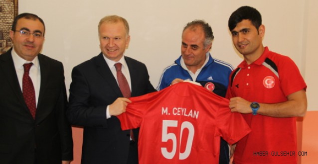 Nevşehir Valisi Mehmet CEYLAN, 14-27 Haziran 2015 tarihleri arasında Almanya'da düzenlenecek İşitme Engelliler Avrupa Futbol Şampiyonası'na katılacak olan ve şampiyona öncesinde Nevşehir Gençlik Hizmetleri ve Spor İl Müdürlüğü Kamp Eğitim Merkezi'nde kampa giren İşitme Engelliler Milli Futbol Takımını ziyaret etti.