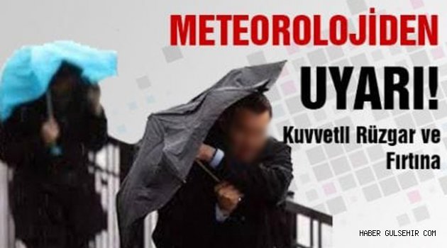 Yapılan son değerlendirmelere göre; 07.05.2019 tarihi 08:00’den, 08.05.0219 tarihi 22:00 saatleri arasında, Nevşehir, Kayseri, Kırşehir, Yozgat ve Sivas çevrelerinde kuvvetli Rüzgar (40-60 km/sa) ve yer yer fırtına (50-70 km/sa) ile birlikte soba ve doğalgaz kaynaklı baca gazı zehirlenmesi, ulaşımda aksamalar, çatı uçması, ağaç ve direklerin devrilmesi yönünde oluşması muhtemel risklere karşı tedbirli ve dikkatli olunması gerekmektedir.