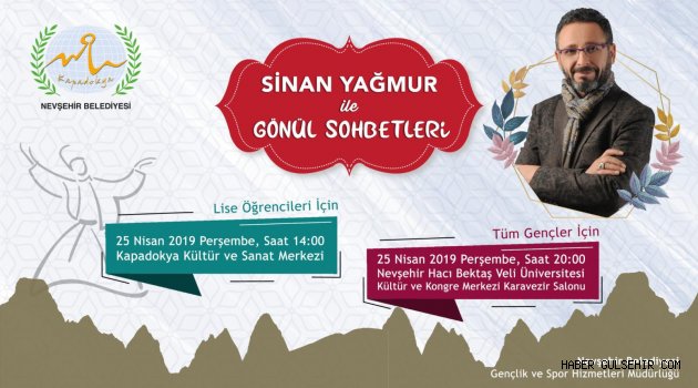 Nevşehir Belediyesi’nin katkıları ile 25 Nisan Perşembe günü, ünlü Yazar Sinan Yağmur, gençlerle gönül sohbetlerinde bir araya gelecek.
