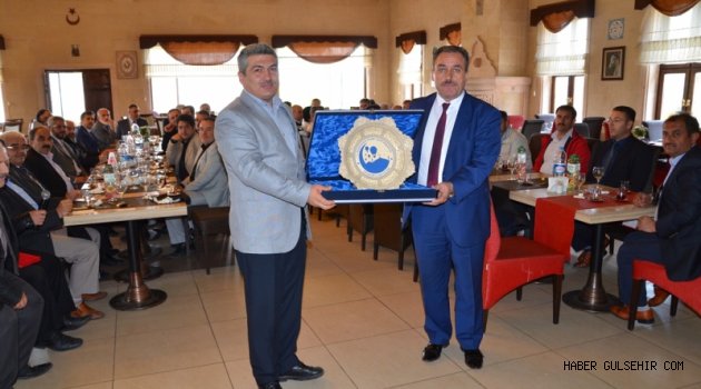 Günün hatırası ve Nevşehir hatırası olarak, İl Müftülüğü tarafından hazırlanan yöreye ait el işlemeli çini tabağı Vali Yardımcısı Mustafa Ünaldı Müftü Yardımcısı A. Celalettin Altunkaya’ya takdim ederken, İl Müftüsü Yakup Öztürk de Plaket takdim etti.