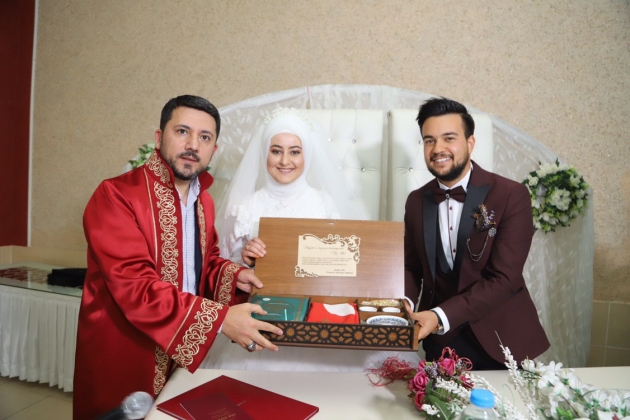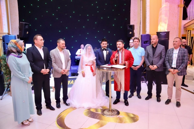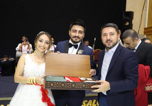 Başkan Arı daha sonra Büşra Doğan ve Muhammet Durmaz isimli genç çiftin düğün törenine katıldı. Burada çiftin nikâh aktini gerçekleştiren Arı, çifte içerisinde Kur’an-ı Kerim, Türk Bayrağı ve bir de kahve takımının bulunduğu hediye takdim etti.