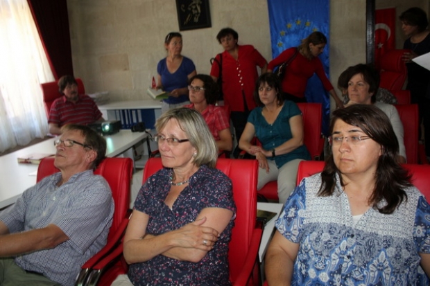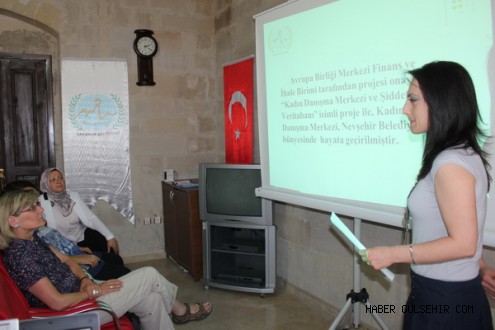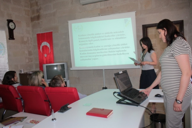 Proje sorumlusu Nevşehir Hacıbektaş Veli Üniversitesi öğretim görevlisi Filiz Yüksel başkanlığında ve aralarında Almanya’nın Saarbrücken kentindeki Üniversite ve sivil toplum örgütlerinden sosyolog, psikolog ve pedagog ‘un yer aldığı 10 kişilik uzmanlar heyetine, Nevşehir Belediyesi Kadın Danışma Merkezi sorumlusu Şermin Tatar tarafından sürdürülen çalışmalara ilişkin olarak bilgiler verildi.
