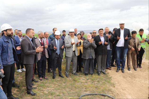 Törende Hafız Mahmut Sami Kemikkıran tarafından yaptırılan duanın ardından, sitenin temeline ilk harç için butona basan Belediye Başkanı Rasim Arı, firma yetkililerine hayırlı ve bol kazançlar diledi.