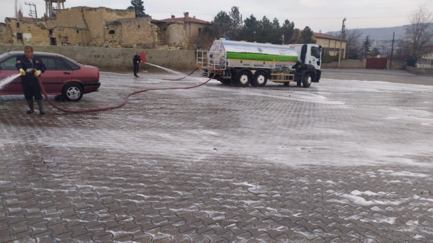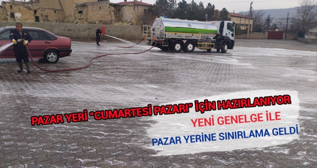 Ürgüp'te pazar yerinde tedbir amacıyla dezenfeksiyon ve temizlik çalışması Ürgüp Belediyesi görevlileri tarafından yapılarak pazar yeri yarın açılacak meyve sebze pazarı için hazırlandı. Genelge yayınlanmadan önce aynı tedbirlerin uygulanması talimatını Zabıta Müdürlüğüne veren Ürgüp Belediye Başkanı Mehmet Aktürk, "İçişleri Bakanlığımız genelgesi ile bu hafta zaruri ihtiyaçlar dışında ürün satışına izin verilmeyecek. Geçen hafta uyguladığımız gibi el dezenfektanı ile pazar yerinde görevlilerimiz olacak. 3'er metre aralıklarla tezgahlar kurulacak. Pazarda maske dağıtarak tüm hemşehrilerimin riski en aza indirerek alışveriş yapmalarını