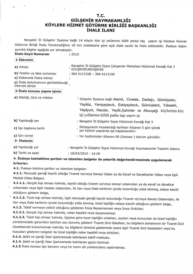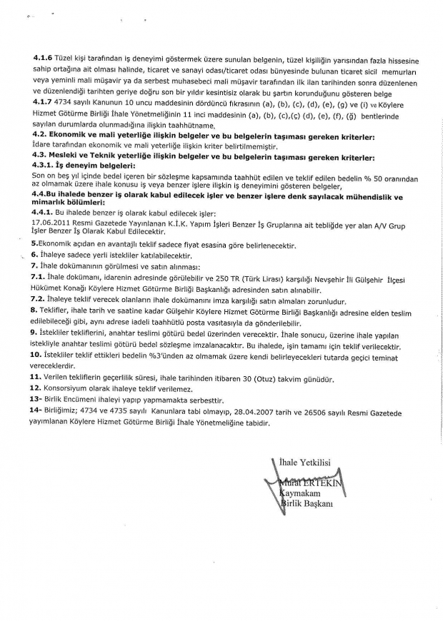 gülşehir kaymakamlığı ihale