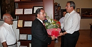 Nevşehir İl Müftüsü Yakup Öztürk başkanlığındaki Türkiye Diyanet Vakfı Nevşehir Şubesi yönetim kurulu üyeleri, Belediye Başkanı Hasan Ünver’i makamında ziyaret ederek bir süre görüştü.