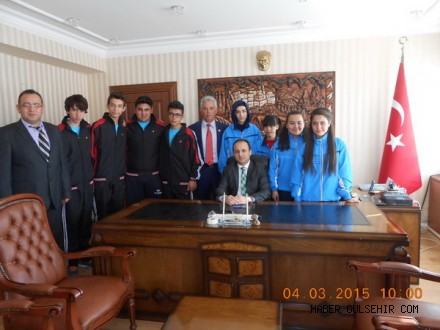 Gülşehir İlçe Kaymakamı Murat ERTEKİN, 15-20 Mart tarihlerinde Mersinde yapılacak müsabakalarda İlimizi temsil etmeye hak kazanan şampiyonlarımızı ve Okul müdürümüz Suat ERDOĞAN ile beden eğitimi öğretmenimiz İlhan EKİCİ' yi makamında kabul ederek tebrik etti ve öğrencilerimizden Mersinde yapılacak müsabakalarda da aynı başarıyı göstermelerini istedi.
