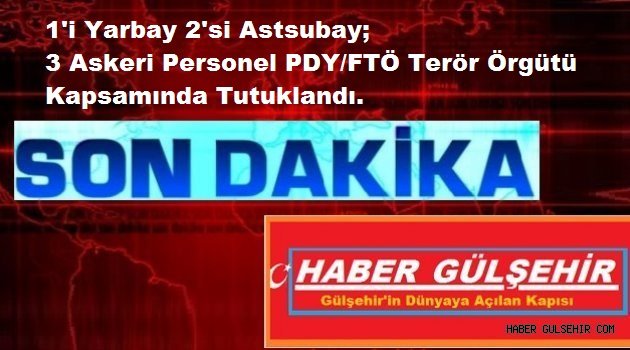 Nevşehir Cumhuriyet Başsavcılığı tarafından yürütülen Fethullahçı Terör Örgütü Paralel Devlet Yapılanması (FTÖ/PDY)soruşturması kapsamında astsubaylar Y.I., S.D. ve yarbay Z.E., tutuklandı.