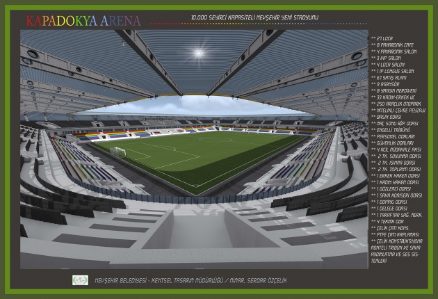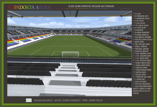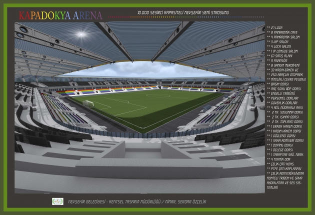 Nevşehir Adnan Menderes Terminali’nin hemen yanında proje çalışmaları tamamlanan Nevşehir Kapadokya Spor Kompleksi ‘ne ilişkin olarak bilgiler de veren Ünver, bu alana sadece bir stadyum olarak bakılmaması gerektiğini ifade etti. Nevşehir Kapadokya Spor Kompleksinde çeşitli sportif aktivitelerinin de yine dünya standartlarına uygun bir şekilde yapılacağını aktaran Nevşehir Belediye Başkanı Hasan Ünver, çelik çatı konstrüksiyonu ile kaplanacağını dile getirdi. 11 bin kişilik Nevşehir Kapadokya Spor Kompleksinin sahip olacağı ünitelerle de ilgili bilgiler veren Ünver, uluslararası ve dünya ölçeğinde sportif karşılaşmaların yapılmasında ihtiyaç duyulan tüm donanımların planlandığını söyledi. Ünver “ Nevşehir Gazi Stadı artık ekonomik ömrünü doldurdu. Hizmet kalitesi, ulaşılabilirliği kolay otopark imkanı ile artık şehrimize daha nitelikli bir merkez gerekiyordu. Öyle inanıyorum ki Nevşehir Kapadokya Spor Kompleksi bunların tamamını sağladığı gibi diğer sportif çalışmalar için de oldukça ideal bir değer sunuyor. Toplam 45 bin metrekarelik bir alandaki Nevşehir Kapadokya Spor Kompleksi bu açıdan bakıldığında 19 bin metrekarelik alanda yer alan Gazi Stadının hemen hemen 3 katı oranında bir alana sahip. Önümüzdeki süreçte yine bu alan yakınlarında bir de spor salonunun yapımını planlıyoruz. Sadece ülkemiz futbol takımları değil, dünya takımlarının da her türlü imkana sahip komplekste kamp yapabilir hale gelecektir. Spor turizminin de gelişimi adına bu yatırımlar vazgeçilmez bir önem taşıyor. Şimdiden şehrimize hayırlı olmasını temenni ediyorum. Yatırımlara ilişkin açıklamalarımız bu üç dev yatırımla da kesinlikle sınırlı kalmayacak. Yine önümüzdeki süreçte daha başka dev hamlelerimiz için açıklamalarımız olacak. “dedi.