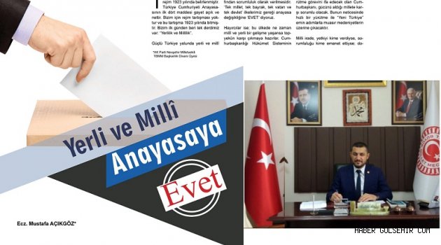 AK Parti Nevşehir Milletvekili TBMM Başkanlık Divanı Kâtip Üyesi Sayın Mustafa AÇIKGÖZ' ün, Yerli Düşünce Dergisi Mart 2017 sayısındaki "Yerli ve Millî Anayasaya Evet" başlıklı yazısı