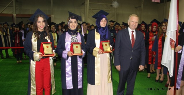 Konuşmaların ardından törene katılan Nevşehir Valisi Mehmet CEYLAN ve Rektör Prof. Dr. Filiz KILIÇ birlikte dereceye giren öğrencilere plaketlerini verdi.