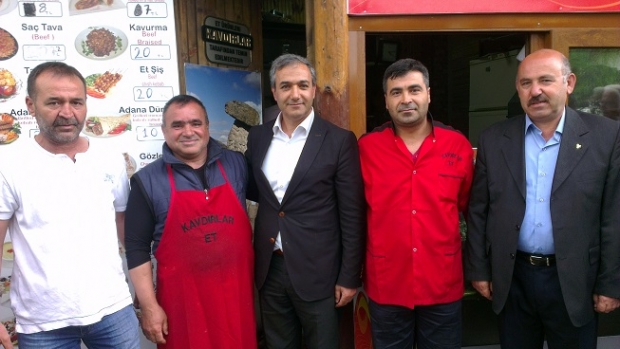 MHP Nevşehir Milletvekili Adayı Mehmet Varol, İl Başkanı Göksel Taşçı ve partililer Göreme Beldesinde esnaf ziyaretlerinde bulundu. Göreme’de yapılan ziyaret esnasında yağan yağmura rağmen çalışmalarını aralıksız sürdüren MHP Nevşehir Milletvekili Adayı Mehmet Varol partililerin yağmur altında fotoğraf çektirme isteğini de kırmadı. Varol yağan yağmur altında çekilen fotoğrafın ardından ise bizler sözde değil özümüzde de birlikte yürüyoruz dedi. Varol, ‘’ MHP Nevşehir İl Başkanlığımızın koordinesinde seçim çalışmalarımıza aralıksız devam ediyoruz. Sizlerin de gördüğü üzere yağan yağmura rağmen Göreme’de esnaflarımız ve partililerimiz bizlere son derece büyük bir ilgi gösteriyor. Allah’ın izni ile yağan yağmurla birlikte ülkemiz AKP hükümetinden temizleneceği müjdesini Göreme ve Göremeliler bizlere veriyorlar. Biz sözümüz ile değil özümüzle de Nevşehir halkı ile birlikte yürüyoruz. Bugün burada bizlere AKP hükümetinin son günlerini yaşadığı müjdesini veren ve ülkemizin, ilimizin MHP iktidarına ihtyiacı var müjdesi veren Göremelilere teşekkür ediyorum’’ dedi.