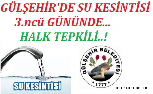 Gülşehir Halkından Edindiğimiz Bilgilere Göre Oruç Reis Mahallesi ve 400 Evler mahallesinde 3.ncü Gününe Giren su kesintisi Halkı Canından Bezdirdi. Gülşehir Belediyecilik Tarihinden En Uuzun Su Kesikliğini Yaşaya dursun; Halk Sesini Yükseltmeye Başladı Bitsin Bu Çile Diyor.