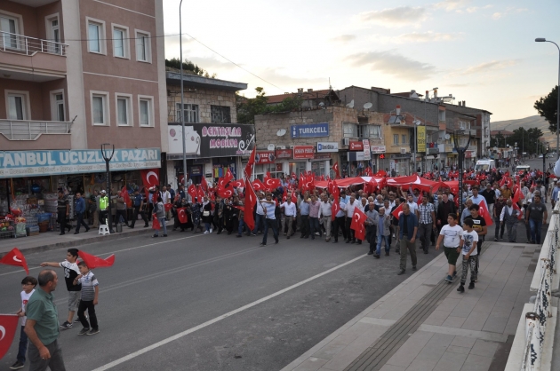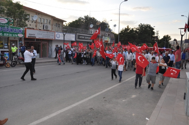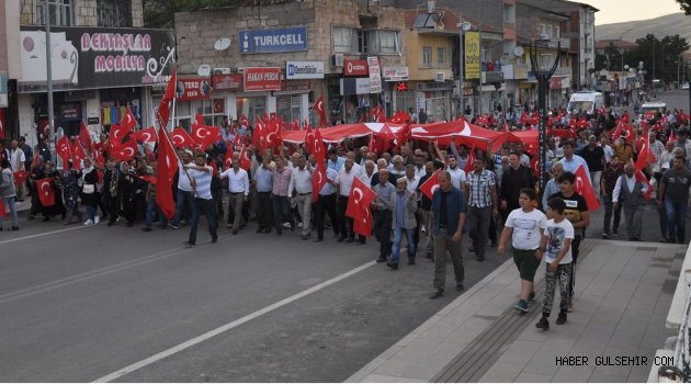 Program; Saat 19;00 da hükümet konağı önünden ilçe terminal girişine kadar yürünmesi ile başladı. Türk bayrakları ile Şehitler Ölmez Vatan bölünmez sloganları ve Tekbirler eşliğinde köprü başına kadar yürüyüş gerçekleştiren protokol üyeleri ve vatandaşlar burada Gülşehir Belediyesince düzenlenen programa katıldı.