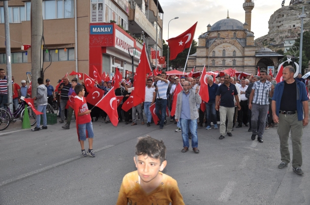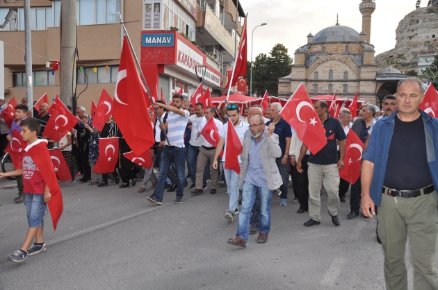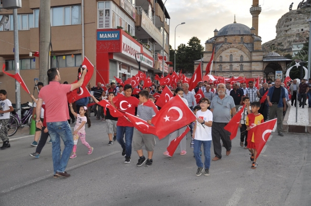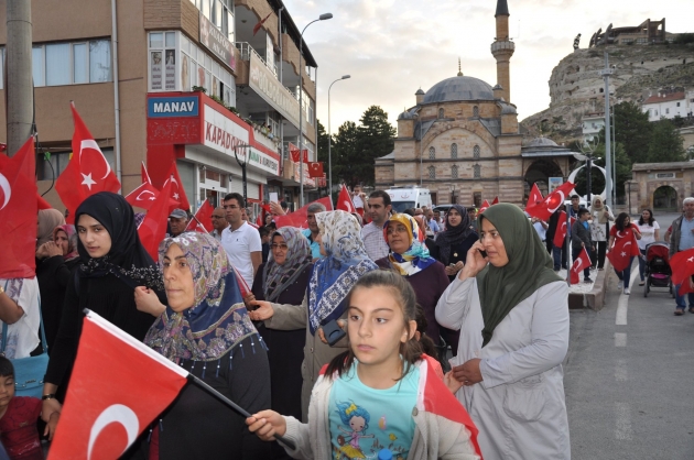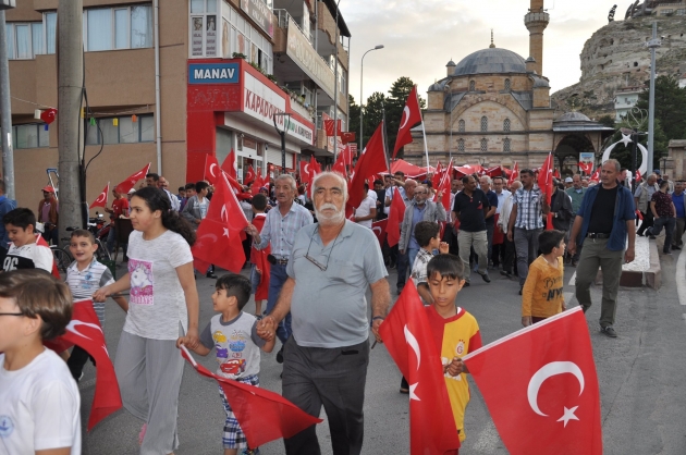 Saat 20;00 de son bulan programın ardından vatandaşlar, önceden organize edilen taşıma sistemi ile Nevşehir'de gerçekleştirilen büyük Yürüyüş ve programa katılmak üzere Nevşehir merkeze gönderildi