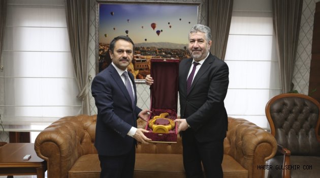 “İlimizde kendilerini ağırlamaktan duyduğu memnuniyetini ifade eden Vali Aktaş ise, ziyaretin anısına Bakan Yardımcısı Sayın Çetin Ali Dönmez’e, Kapadokya yöresine ait el sanatlarından Halkalı Hitit takdim etti.